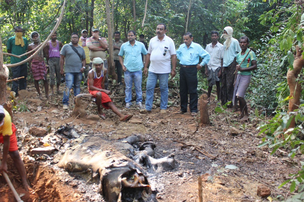 Mr. Vanoo mitra acharya,secretary, sangram, led an enquiry team of forest department officials, working on a tip off and carcas of a dead elephant unearthed.